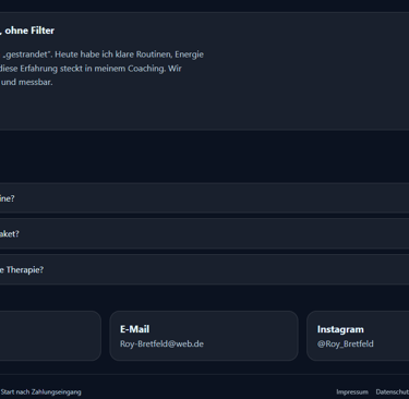 Coaching ist keine Therapie. Ergebnisse sind individuell.