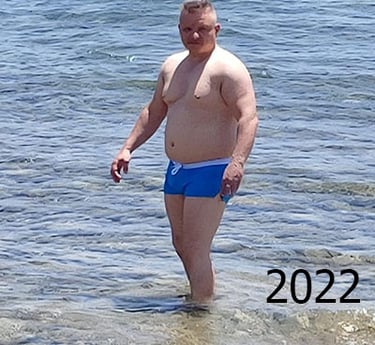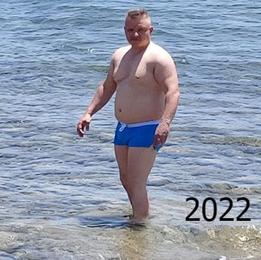 Ich fühlte mich eigentlich gut. Es war wie immer: Schon sechs Jahre trainiert, noch keine großartigen Erfolge gesehen – aber Geduld hatte ich, und ich wusste: die braucht man. Im Urlaub auf Rhodos sagte ich zu meiner Frau: „Ich muss in diesem Urlaub mindestens einmal ins Wasser.“ Für den nächsten Tag nahmen wir uns das vor. Los ging’s: voller Enthusiasmus an den Strand, Klamotten aus und rein. Am Anfang war das Wasser kalt, doch ich fand hinein, überwand mich – und fühlte mich pudelwohl, wie ein Fisch im Wasser. Ein Fisch? Meine Frau machte an dem Tag das Foto aller Fotos von mir. Ich wollte es nicht glauben: Aus dem Fisch war auf dem Bild ein Wal geworden. Zu Hause dachte ich: Glück gehabt, dass Greenpeace nicht in der Nähe war – die hätten mich wieder ins Meer geschoben, weil sie gedacht hätten, ein Wal ist gestrandet.